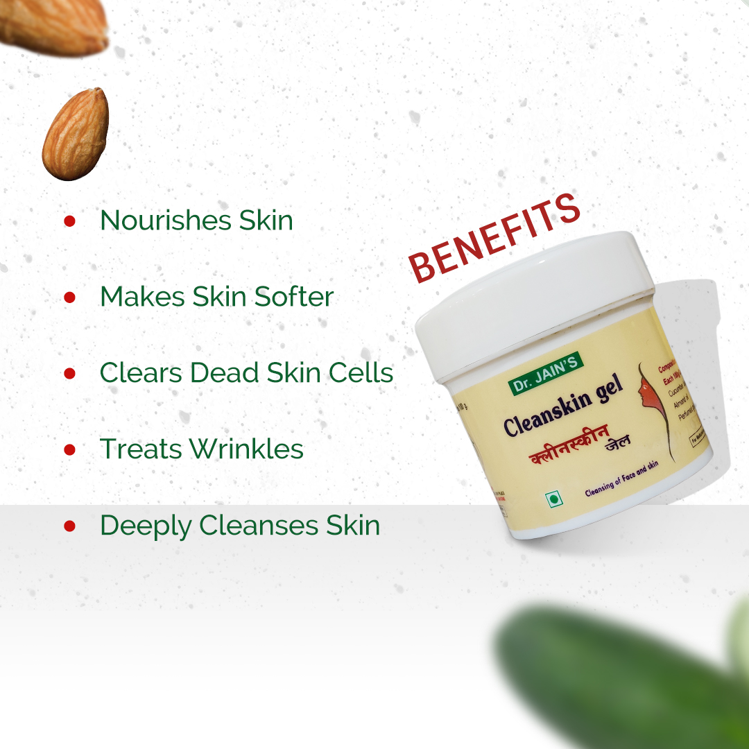 Dr. Jain's Cleanskin Gel (100g) is a 100% Natural Gel that cleanses the face and neck and keeps skin healthy. It is suitable for all skin types especially dry skin and is ideal for all age groups.