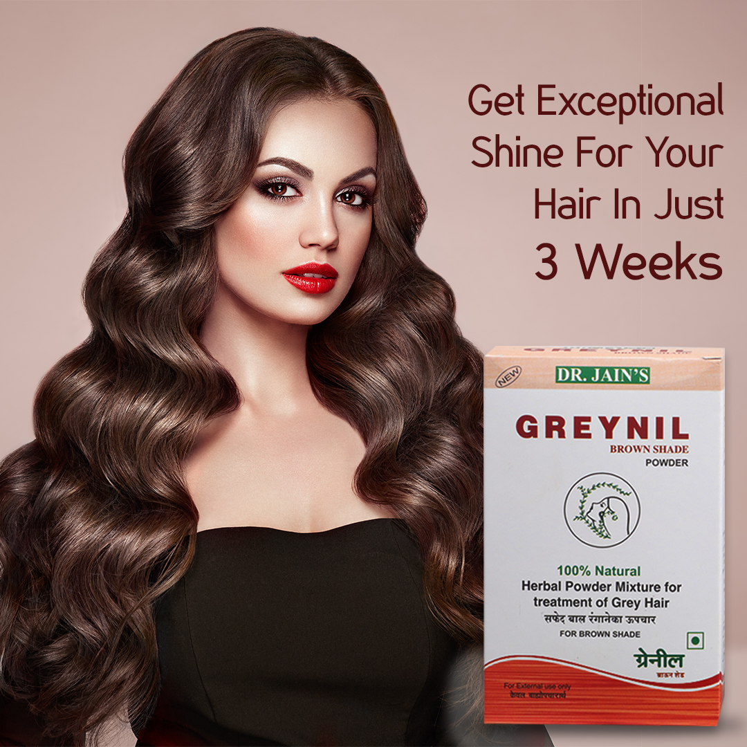 Dr. Jain's Herbal Products is one of the well-recognized manufacturers of Herbal Health, Skin & Hair Care Ayurvedic Powders, Gels & Aromatic Essential Oils. As per the demands, a well-researched formulation based on pure herbal and superior quality Ayurvedic products. Greynil Brown Shade Powder is a 100 % Natural Hair Color used to color grey hair without chemicals leaving a lustrous shine. It improves hair health by conditioning the roots and also boosts hair growth.
